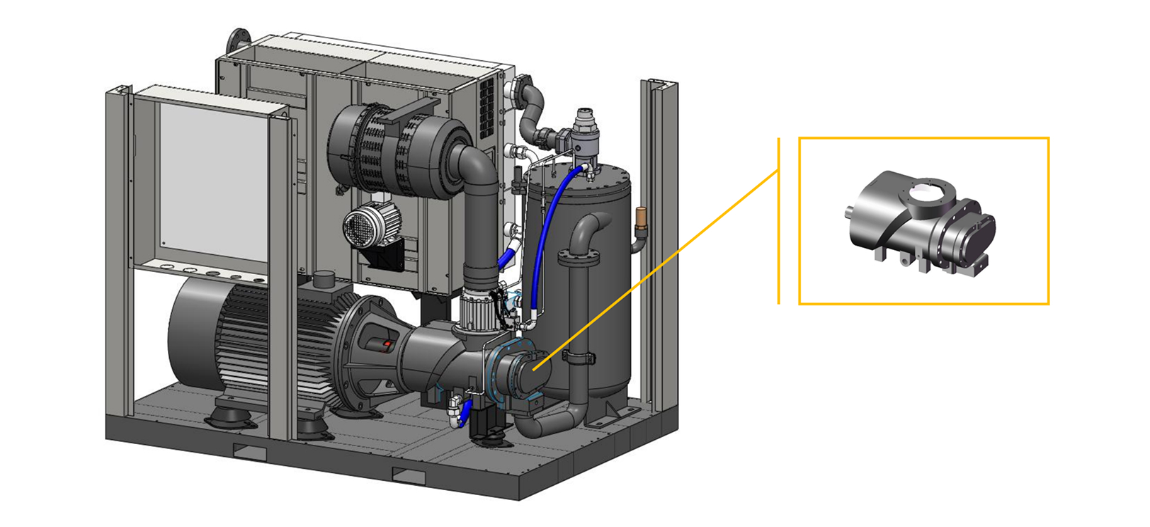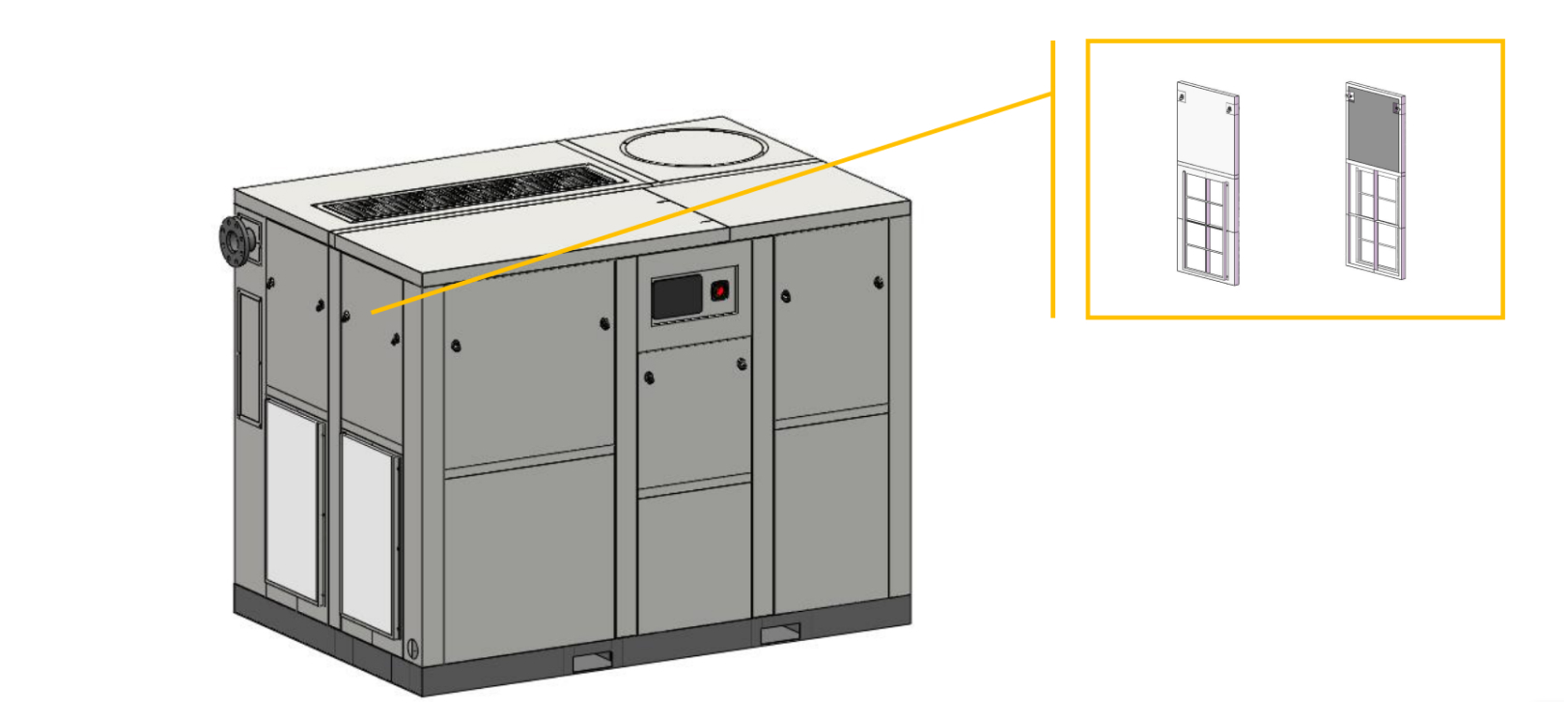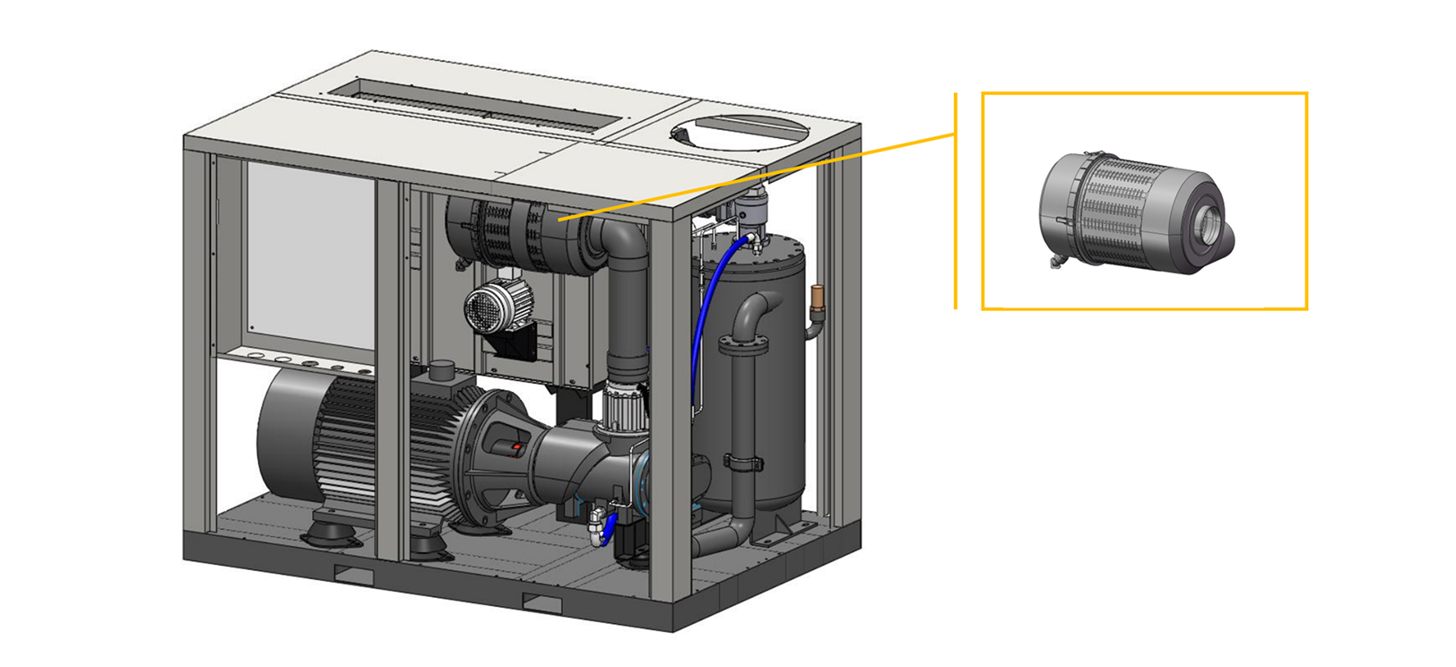 На компрессорах нашего производства используется отдельный впуск воздуха снаружи ко всем потребителям, а именно: компрессорный блок, эл. двигатель, электроника и частотный преобразователь. Потребителю не конфликтуют внутри за забор воздуха между собой. На компрессорный блок идет отдельное впускное отрвестие, с доп. блоком преварительной фильтрации.