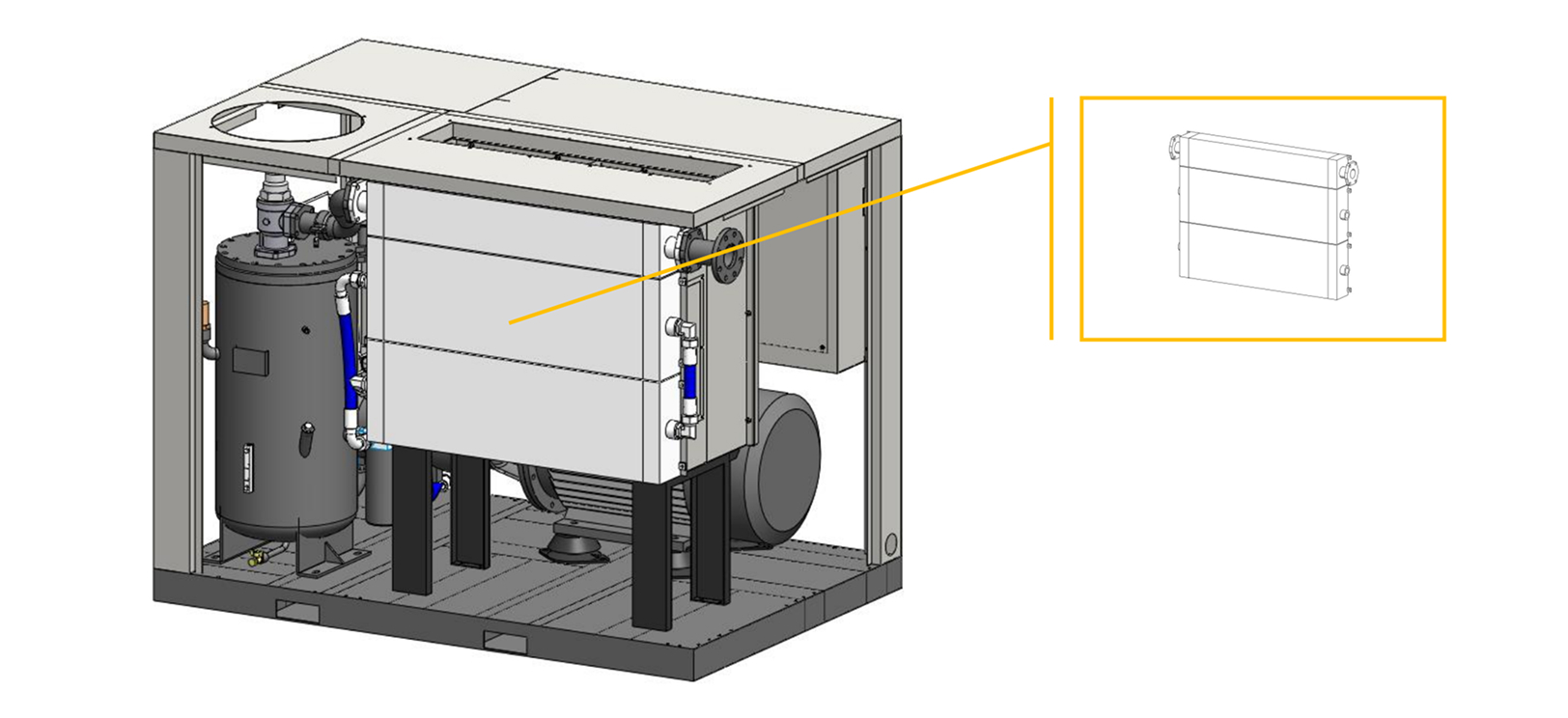 С целью использования одинковых элементов к примеру на мощности 22-55кВт. На 55кВт компрессоре вы уже не сможете заменить охладитель/вентилятор одним движением.
