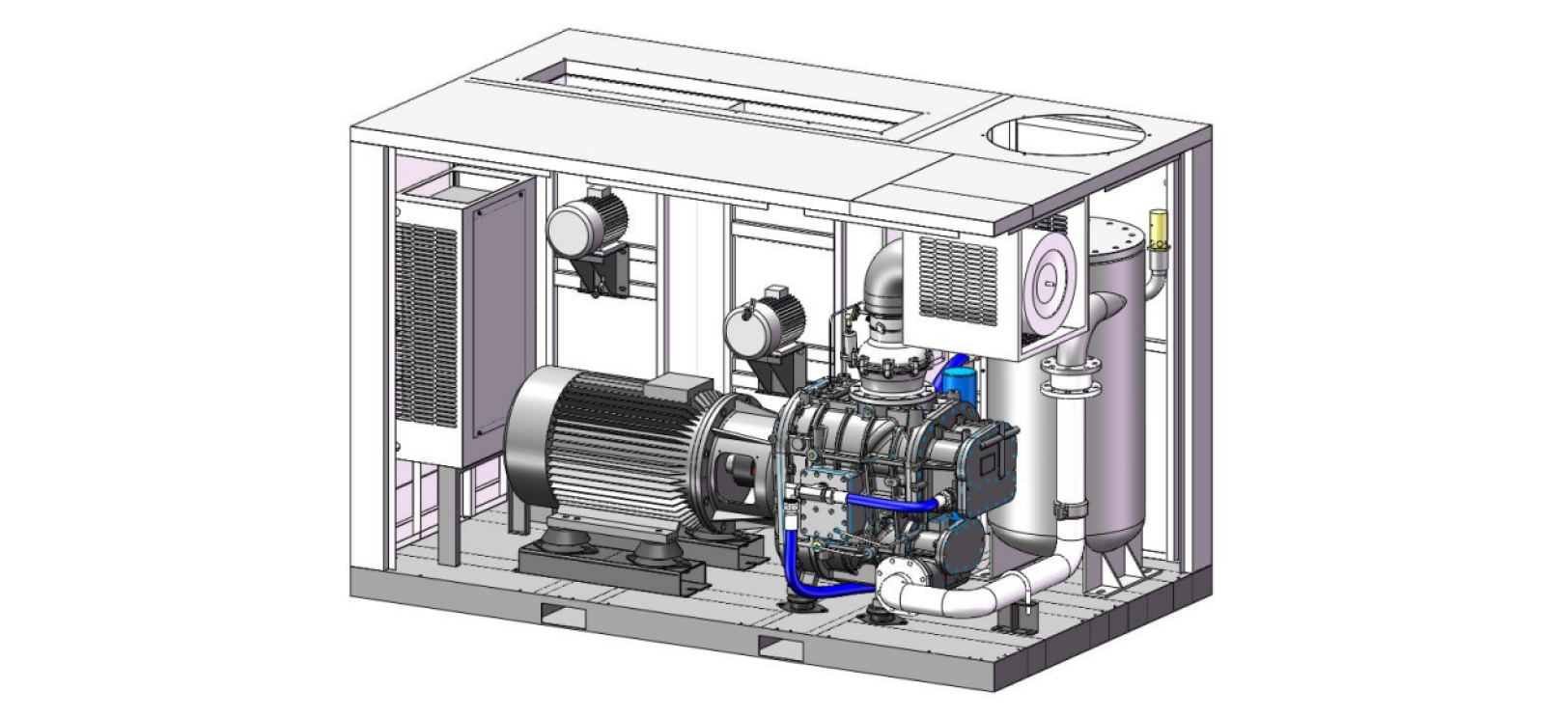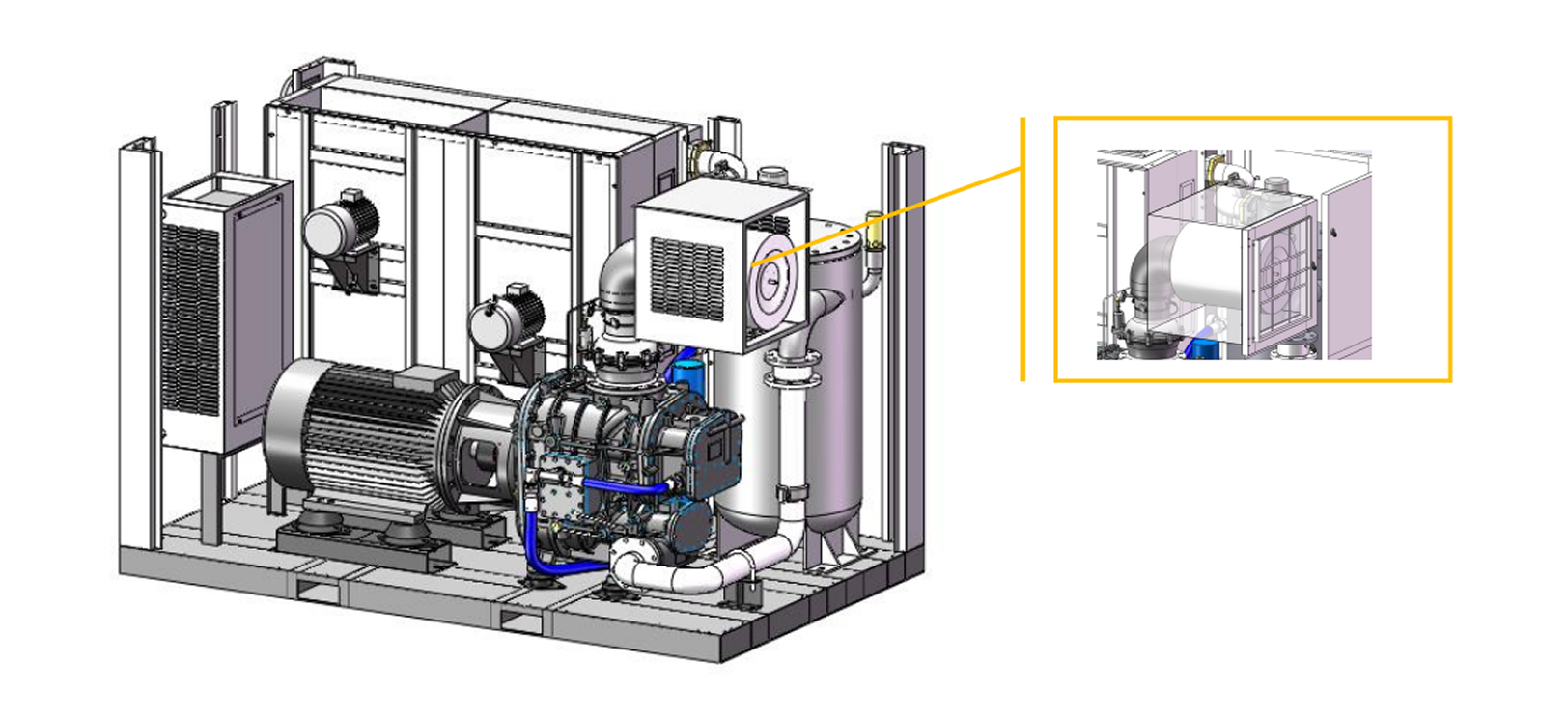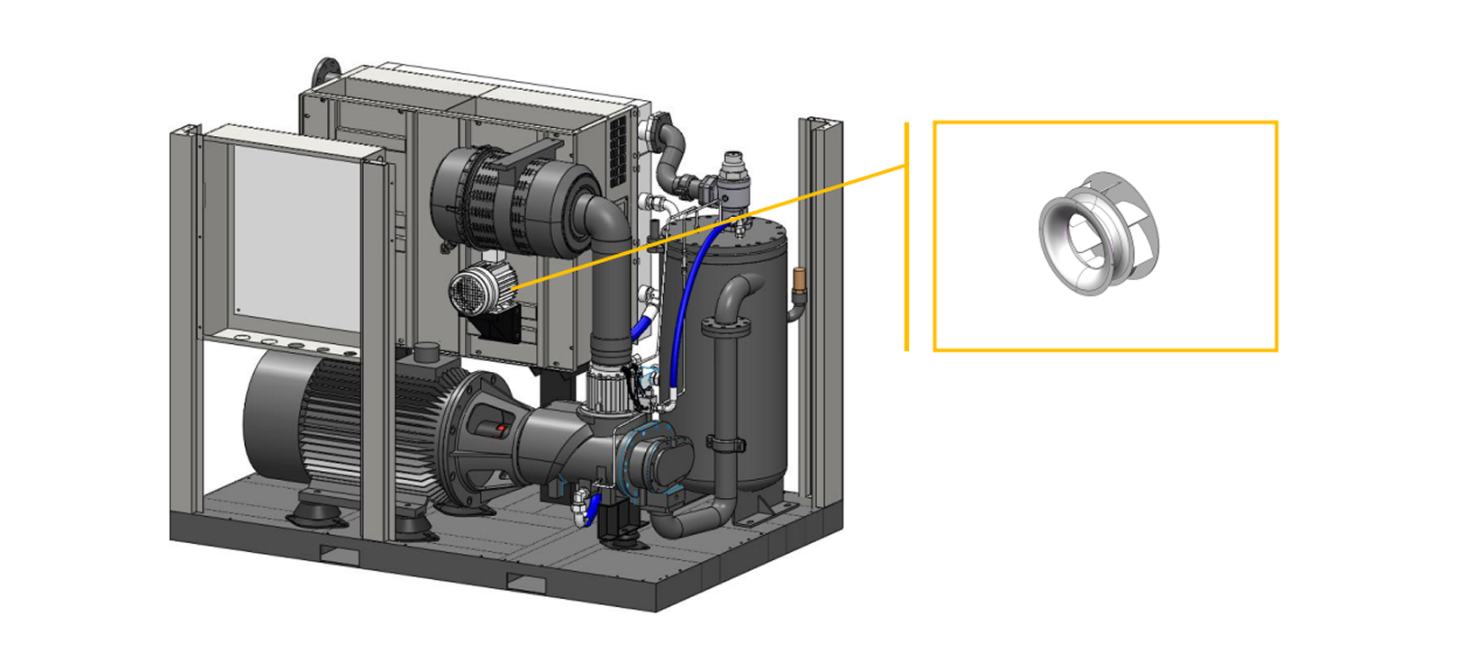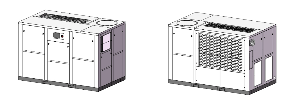 Мы используем центробежные вытяжные вентиляторы, мин. уровень шума, вытягивают горячий воздух из внутренней полости компрессора для поддержания комфортной температуры работы компрессора.