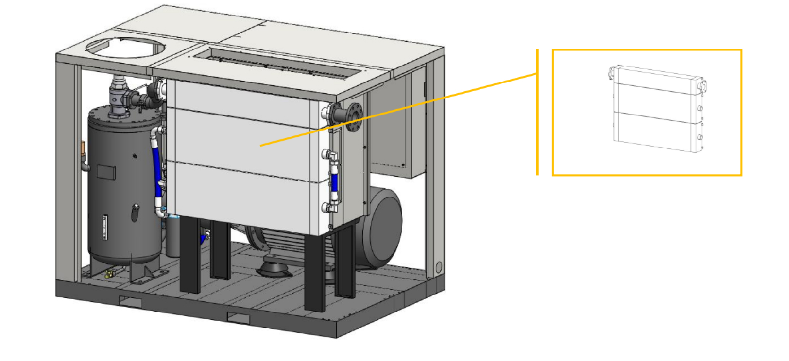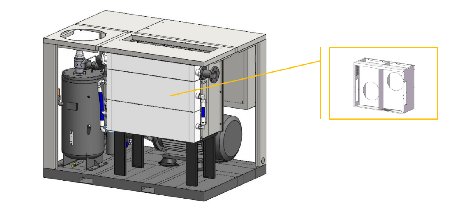 С целью использования одинковых элементов к примеру на мощности 22-55кВт. На 55кВт компрессоре вы уже не сможете заменить охладитель/вентилятор одним движением.