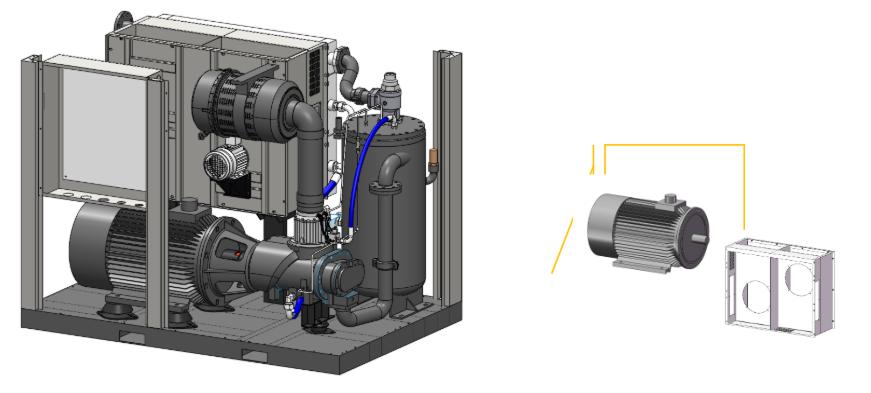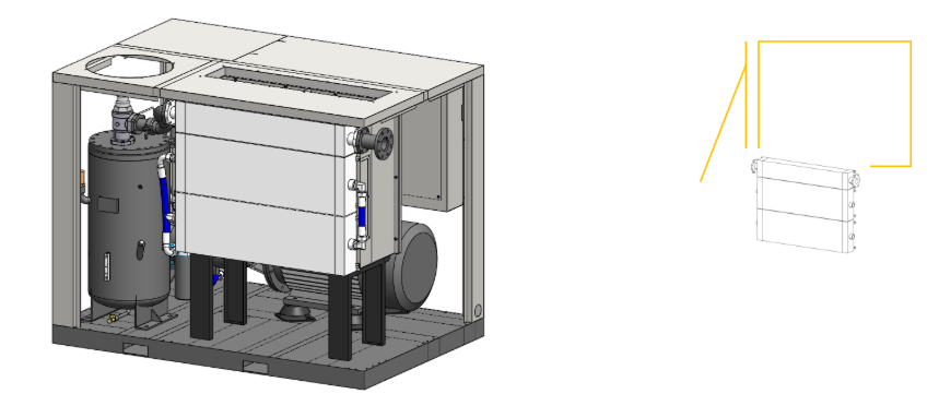 С целью использования одинковых элементов к примеру на мощности 22-55кВт. На 55кВт компрессоре вы уже не сможете заменить охладитель/вентилятор одним движением.