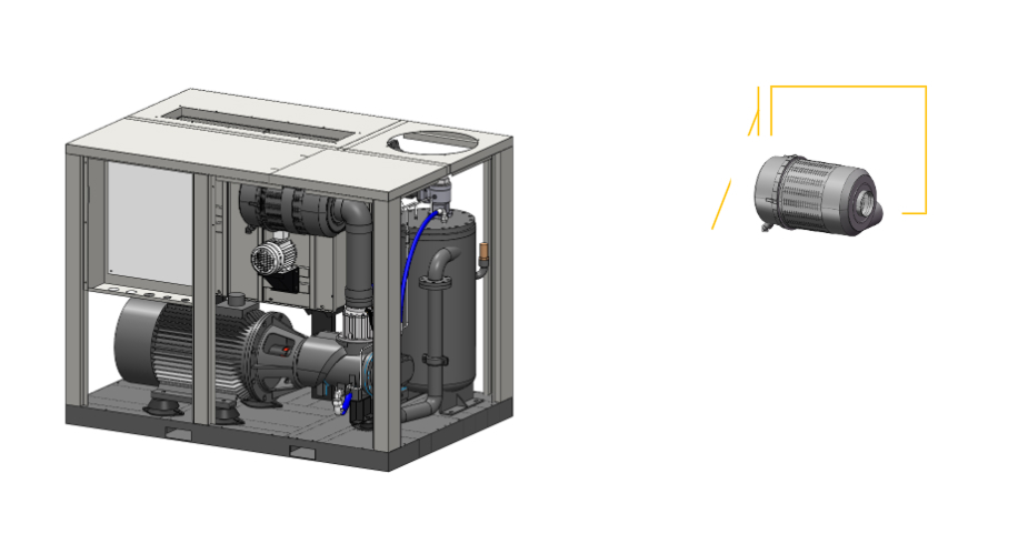 На компрессорах нашего производства используется отдельный впуск воздуха снаружи ко всем потребителям, а именно: компрессорный блок, эл. двигатель, электроника и частотный преобразователь. Потребителю не конфликтуют внутри за забор воздуха между собой. На компрессорный блок идет отдельное впускное отрвестие, с доп. блоком преварительной фильтрации.